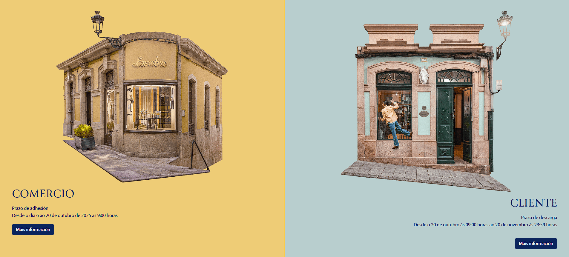 Os comercios interesados en adherirse ao programa deberán rexistrarse na web www.mercanavila.gal desde as 09:00h do luns 6 de outubro ata as 09:00h do luns 20 de outubro, achegando os datos requiridos no formulario -nome, apelidos ou razón social, domicilio fiscal, enderezo, epígrafe do IAE, entre outros- e cumprindo cos requisitos establecidos nas bases da convocatoria, como por exemplo o de estar ao tanto das obrigas tributarias coa Deputación e cos concellos da provincia da Coruña, ter establecemento aberto nun municipio de menos de 20.000 habitantes e non estar na obriga de pagar o IAE.