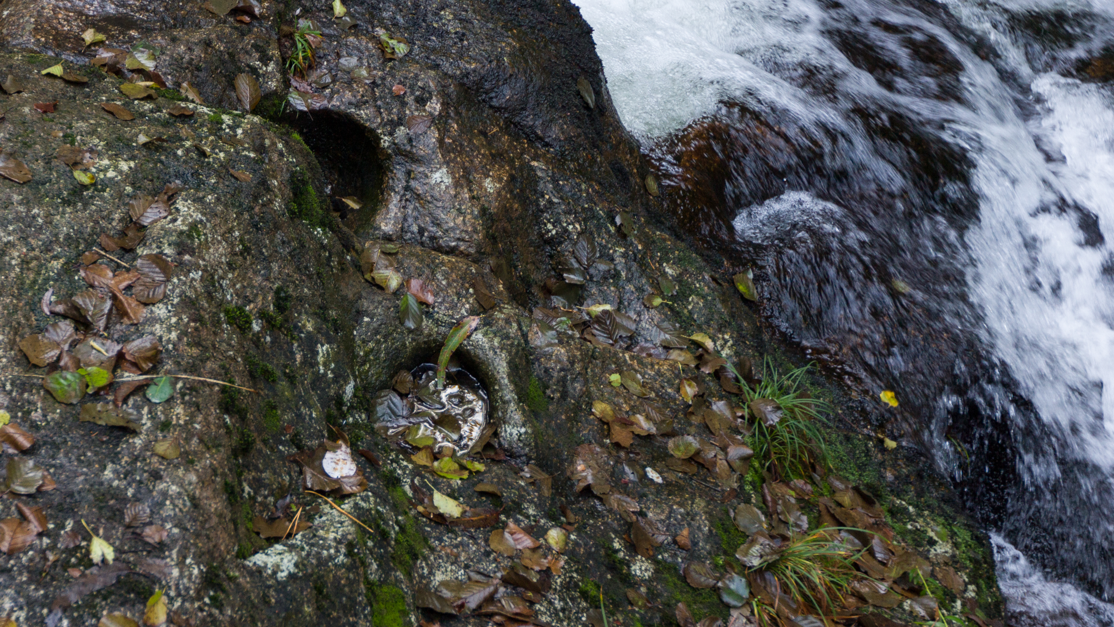 Segundo Francisco Canosa ese cambio de rumbo é o que orixinou as fervenzas que hai entre a presa da central e o lugar de Riolimpo. Nelas tamén se pode observar o fenómeno xeolóxico das pías, que veñen ser os ocos que se forman nas rochas por causa da acción da auga e de pequenas pedras cautivas dentro deles que actúan coma a pedra dun muíño. Na segunda parada da ruta, o xeólogo falou sobre esas pías que, andando o tempo, poden chegar a converterse no que a ciencia denomina “marmitas de xigante“.