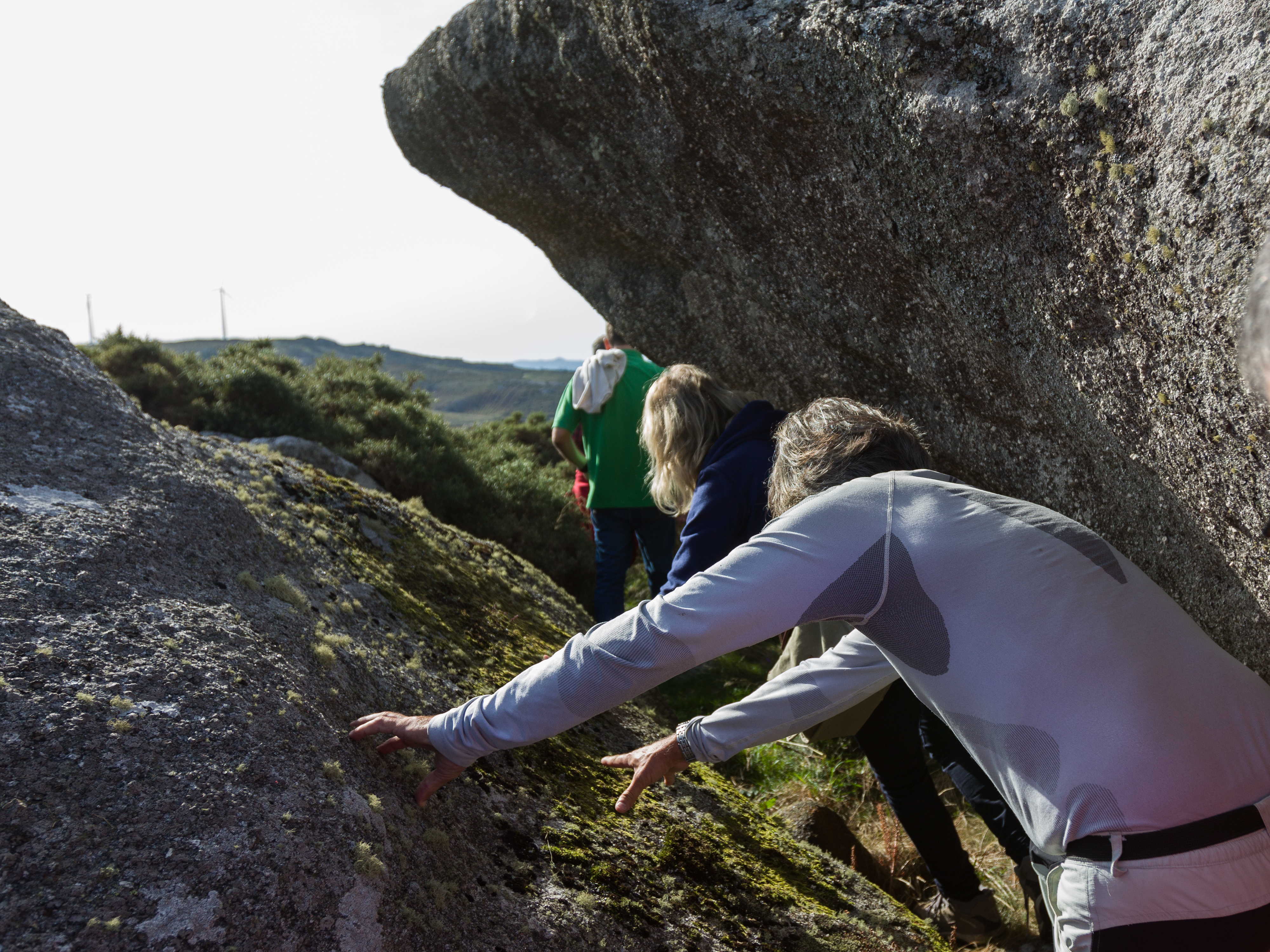 O fenómeno dos bolos aínda é máis visible na zona de Racamonde, no límite noroeste do Forgoselo. Alí a erosión do envoltorio das pedras graníticas deixou as rochas unhas enriba doutras formando as denominadas “pedras cabaleiras” que en moitos casos desafían as leis da gravidade. Francisco Canosa explicoulles ás 30 persoas que participaron na ruta como se crean estas figuras litolóxicas que adoitan presentar tamén pías e taffonis, formas menores das paisaxes graníticas que, a diferenza das pías dos ríos, se forman pola erosión da auga apozando e evacuando nun mesmo punto durante xeracións.