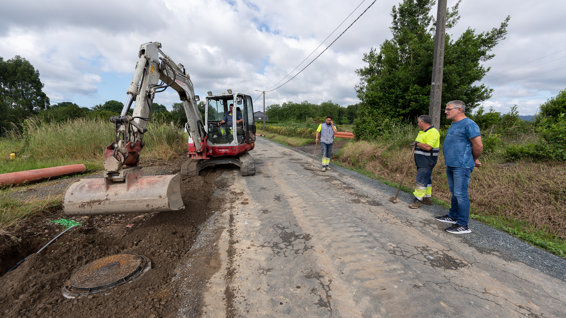 Nese percorrido, en primeiro lugar, efectuáronse labores de limpeza do firme da pista e o reperfilado das cunetas para retirar vexetación e sedimentos e, de paso, darlle a profundidade necesaria para instalar as tubaxes soterradas e as arquetas de rexistro do sistema de evacuación de pluviais.