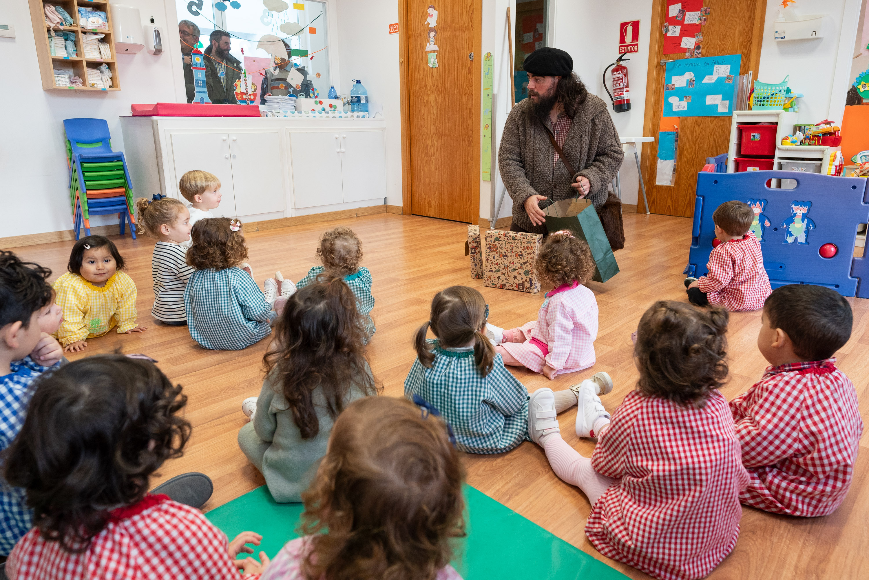As pequenas e pequenos da Rolada saudaron ao Apalpador pouco despois das 10 da mañá. Uns minutos antes da súa chegada, o grupo miúdo, xa avisado polas mestras, agardaba por el no medio dun rebumbio de nervios e ansia por saber que cousiñas lles traería.