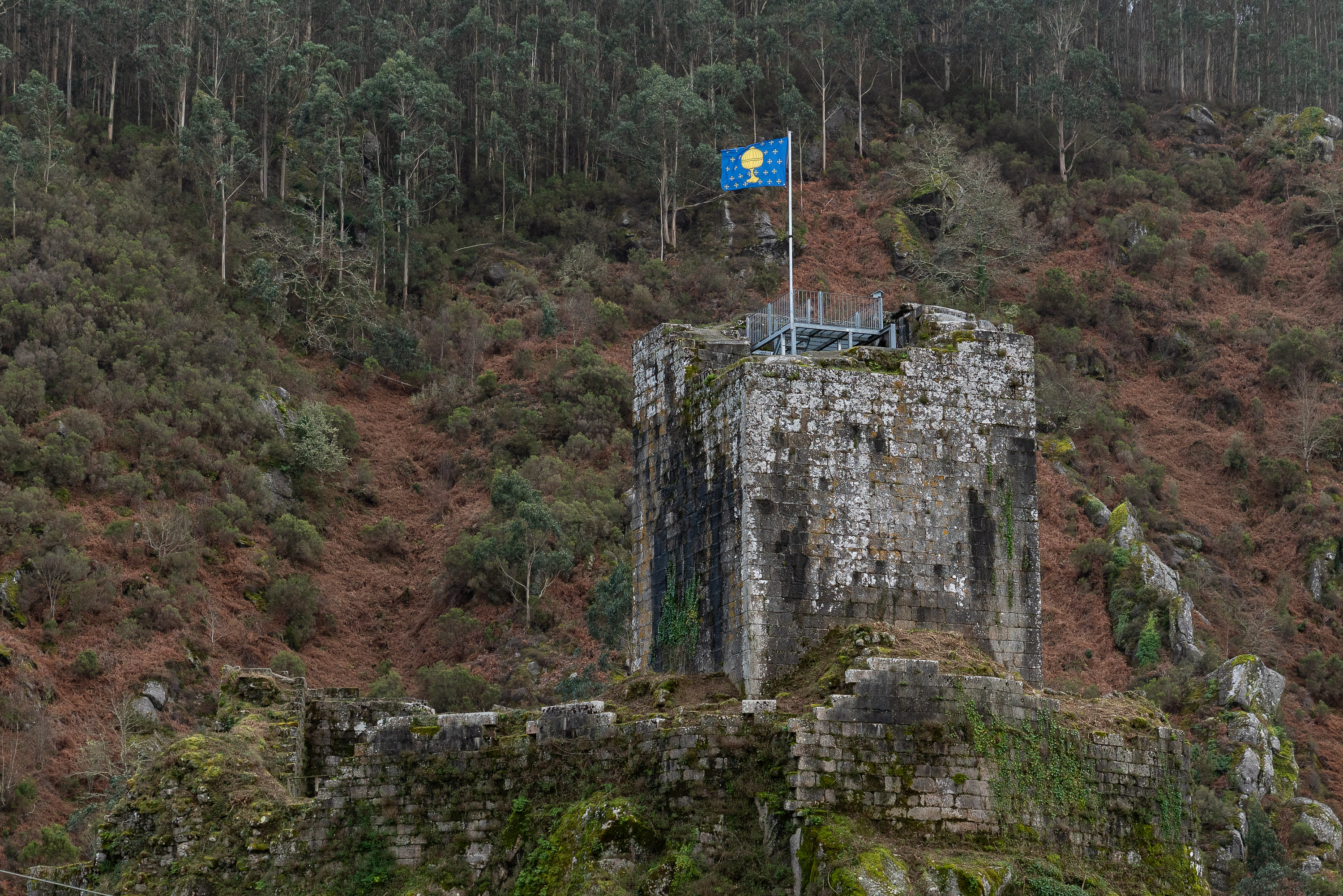 “Tivo Galicia reis antes que Castela leis”. Como ocorre con moitos ditos populares, esta frase encerra unha verdade histórica que non adoita abordarse nas aulas, malia estar ben documentada pola historiografía. E é que un dos primeiros reinos europeos —probablemente o primeiro— foi o reino suevo de Gallaecia, creado no século V. Aquel territorio abranguía a metade noroeste da Península, desde o Texo ata parte da cornixa cantábrica. O que non sabemos é que símbolos empregaban aqueles monarcas para se identificaren. En realidade, non é ata o século XI cando aparece a primeira referencia a un escudo pertencente a un rei galego. E habería que agardar dous séculos máis para atopar o primeiro exemplo dun símbolo do Reino de Galicia, que aínda mudaría en varias ocasións ao longo dos seguintes 600 anos. A interpretación do estandarte que debía estar vixente nos séculos XV e XVI, o do copón rodeado de cruces sobre fondo azul, ondea desde este mércores no punto máis alto do castelo de Naraío, como lembranza da identidade de Galicia como reino e como símbolo dos momentos de maior relevancia histórica da fortaleza.