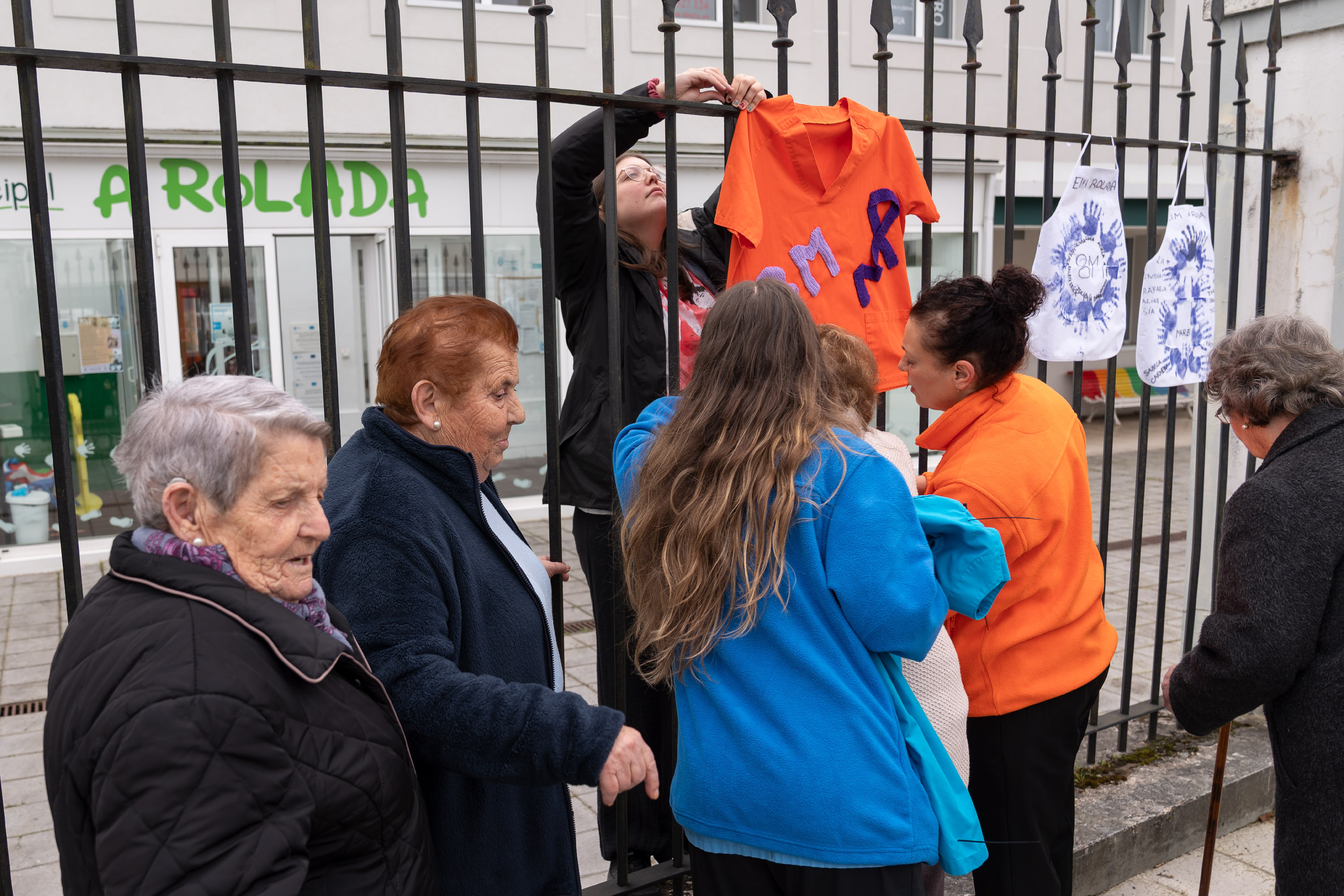 A reivindicación simbólica incluirá delantais e mandilóns, ademais de casacas como as utilizadas polas mestras da EIM A Rolada e polas profesionais do Servizo de Axuda no Fogar (SAF), ademais dunha faixa co lema “o traballo de coidados sostén o mundo”, poñendo de relevo a importancia vital pero precarizada destes sectores profesionais.