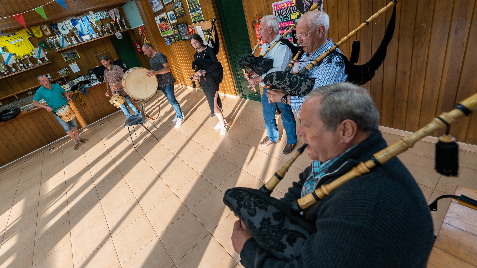 O grupo de gaitas e percusión da escola municipal de música tradicional conta cunha ducia de compoñentes de distintas idades, case todos pertencentes ás clases de perfeccionamento. Para o serán deste venres teñen ensaiadas varias pezas entre muiñeiras, jotas e rumbas, como por exemplo “Brincadeiro”, “Os cinco mariñeiros”, “O merlo” e outras que se engadiron este ano a un repertorio cada vez máis extenso co que a pequena banda xa anda deleitando públicos de toda a volta e incluso doutras partes de Galicia.
