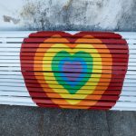 Un co arco da vella, outro cun grande corazón multicor, outro con pinturas que semellan escorregar polo respaldo, algún con flores e mesmo un deles coa mensaxe #sansadecores que resume perfectamente o posicionamento dun Concello e dun territorio que respecta, que deixa vivir e que promove esa liberdade de ser e sentir que tanto se pide e que a sociedade aínda non dá aceptado de todo.