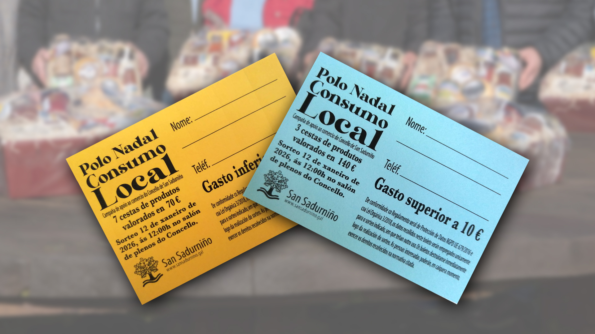 Facer gasto nos establecementos de San Sadurniño volverá ter premio durante estas festas do Nadal. E é que o Concello promove de novo a campaña de apoio aos negocios locais “Polo Nadal, consumo local”. Unha proposta coa que se pretende dinamizar o noso tecido comercial e hostaleiro, ademais de poñer en valor a calidade do servizo que nos ofrecen tendas, bares, restaurantes e outras actividades económicas que participan na campaña. O Concello empezará a repartir entre hoxe e mañá os talonarios de rifas cos que entraremos no sorteo de dez cestas cargadas de produto galego.