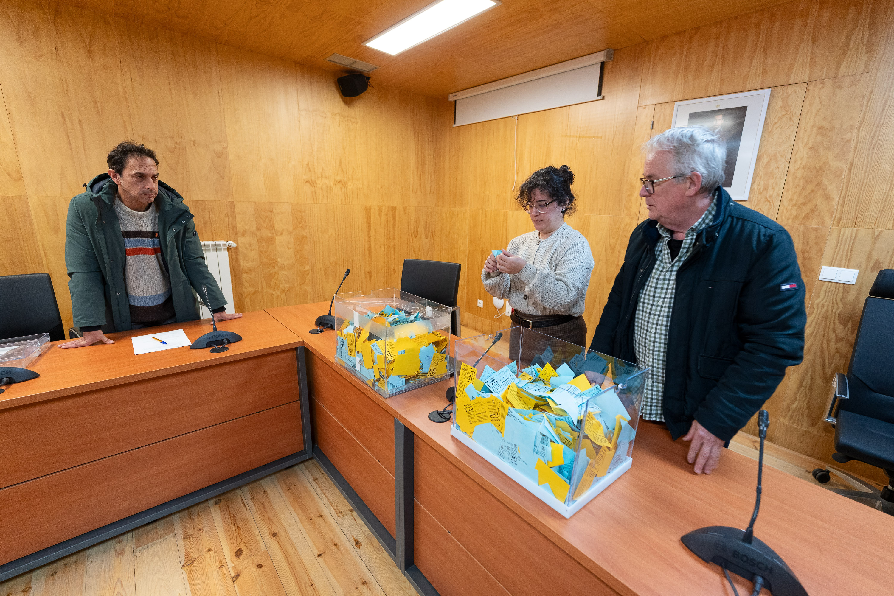 O salón de plenos do Concello volveu ser este luns, outro ano máis, o salón de sorteos no que se extraeron as papeletas ganadoras dos lotes de produto da campaña “Polo Nadal, consumo local”, organizada pola Área de Desenvolvemento local para promocionar o comercio e os servizos de San Sadurniño. Unha iniciativa que volveu ser todo un éxito de participación, con cerca dunha trintena de establecementos implicados que, en conxunto, repartiron 177 talonarios de papeletas entre a súa clientela durante as últimas semanas. Os dez premios, consistentes en sete lotes de produto valorados en 70€ cada un e outros tres cun valor unitario de 140€ entregaránselles ás persoas agrazadas este venres ás 14:30h.